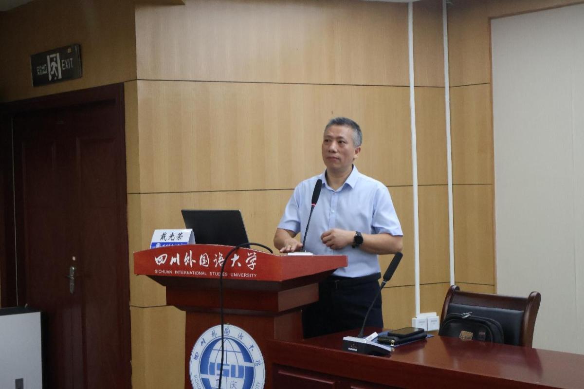 戴光荣教授现任广东外语外贸大学教授、云山杰出学者。讲座伊始,戴教授以生成式人工智能与翻译技术研究为主旨,强调大模型技术已成为翻译研究的“新基建”。基于此,戴教授从当下研究热点分析维度、学科融合趋势分析路径、方法论建议三个方面深入解析翻译技术研究的可行路径。他指出,大模型与翻译的融合需从认知层面探索其翻译特征,例如通过分析大模型对多模态文本的处理逻辑,优化机器翻译的情感维度与文化适应性。“大模型无法替代人工,而要以开放心态将其转化为研究助手。”翻译研究者应关注自然语言处理、深度学习等技术领域,掌握 R 语言、Python 等工具,以量化方法解析机器翻译的底层逻辑。例如,在医疗、法律等垂直领域,通过构建领域专属语料库微调模型,可显著提升翻译精准度。