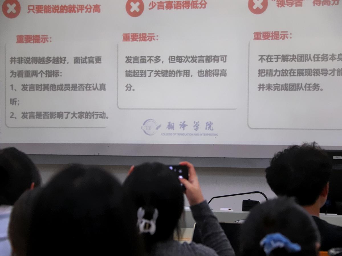 分享接近尾声时,刘朦朦贴心提醒同学们留意面试中“绝对不能做”的事项,建议避免全程使用套话。可先搭建内容框架,再用个人语言自然串联,防止给面试官留下“念课文”的刻板印象。同时,她再次强调礼貌与态度的重要性,鼓励同学们在面试中自信从容、不卑不亢、大方得体地应对每一个环节。