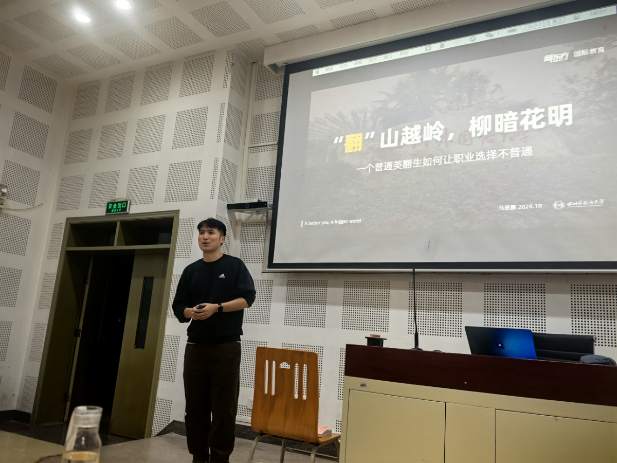 职业生涯中你需要什么?你想要什么样的工作岗位?如何进行职业生涯规划?为今后的工作方向提前要做哪些准备?马洛鹏通过介绍自身经历背景、职业生涯相关概念、人生发展与职业生涯的关系、职业生涯的规划和实施等五个方面告诉同学们如何在老员工阶段做好迎接职业生涯的准备。他巧妙地设计了一个“I should have done……”的互动环节,引领听众一同回味他的成长点滴。大学时期的迷茫,初入职场时对薪资差异的深刻领悟——硕士学历、海外留学经历、专业证书……这些成为了他心中觉醒的种子,“I should have more qualifications”的心声悄然响起。凭借着不懈的奋斗,他终于在川外这片沃土上,绽放为一名才华横溢的口译学子。