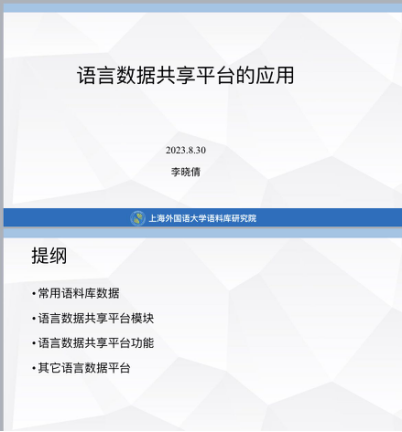 为推进语言数据共享平台的建设,推动语言数据科学以及语言智能等相关领域人才的培养,实现语言数据建设与应用的标准化、流程化和科学化,2023年8月28日至9月1日,由语言数据共建共享与人才培养协作组主办、上海语之能数据科技有限公司协办的“语言数据共建共享青年教师研习会”在上海市漕河泾光华园举行。本次研习会旨在指导高校青年学者建设语言数据及语料库并学会使用语言数据和语料库开展相关主题的研究工作,全国多所高校的近30名青年教师报名参加,公司教师彭红艳应邀参加了本次研习会。