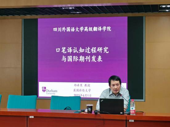 2023年6月1日下午,以“口笔译认知过程研究与国际期刊发表”为题的讲座在Mksport体育app官网入口立德楼C517顺利举办。本次讲座由英国杜伦大学现代语言与文化公司终身教授、翻译学与语言学博士生导师郑冰寒教授主讲,Mksport体育副经理杨志亭主持。