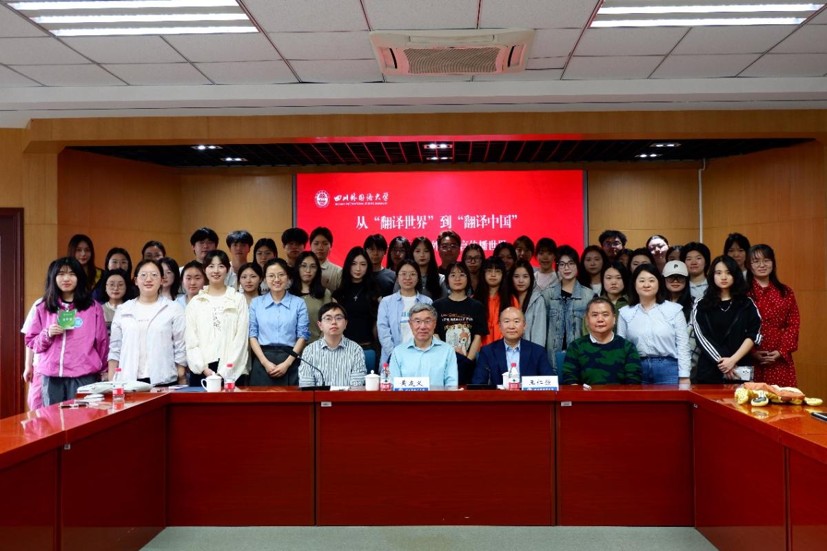4月11日下午,全国翻译专业学位研究生教育指导委员会专家委员会主任、中国外文局原副局长兼总编辑黄友义为公司师生做了题为从‘翻译世界’到‘翻译中国’—用融通中外的语言传播世界”的学术讲座。讲座由副董事长王仁强教授主持。