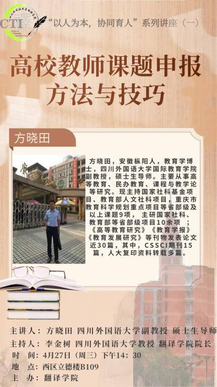 上一篇:【讲座信息】周领顺:译者行为“行为-社会”视阈双中心评价体系构建研究