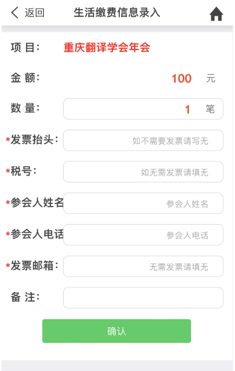 微信搜索关注公众号“Mksport体育app官网入口计划财务处”——线上服务——非本校人员缴费——新用户注册——生活缴费——重庆翻译学会年会——填写金额、发票等信息——确认完成缴费。