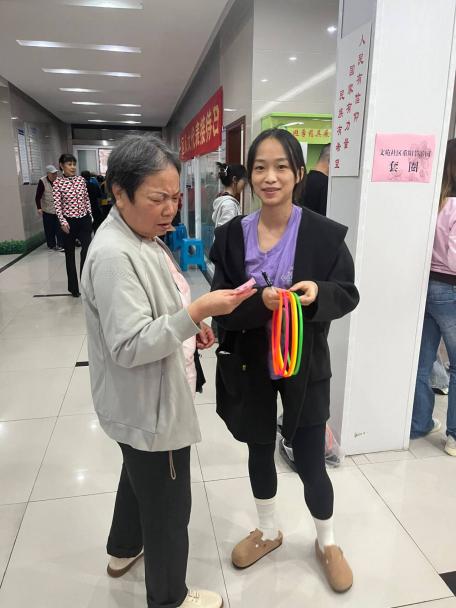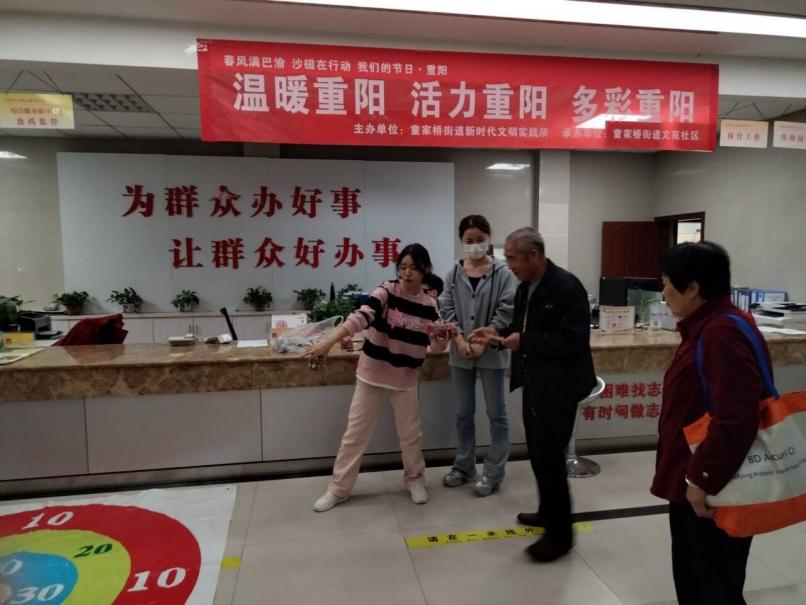 志愿者们早早地来到文苑社区活动中心,开始活动的准备工作。活动伊始,志愿者们向社区的老人们致以节日问候并开启一系列丰富多彩的互动游戏环节。
