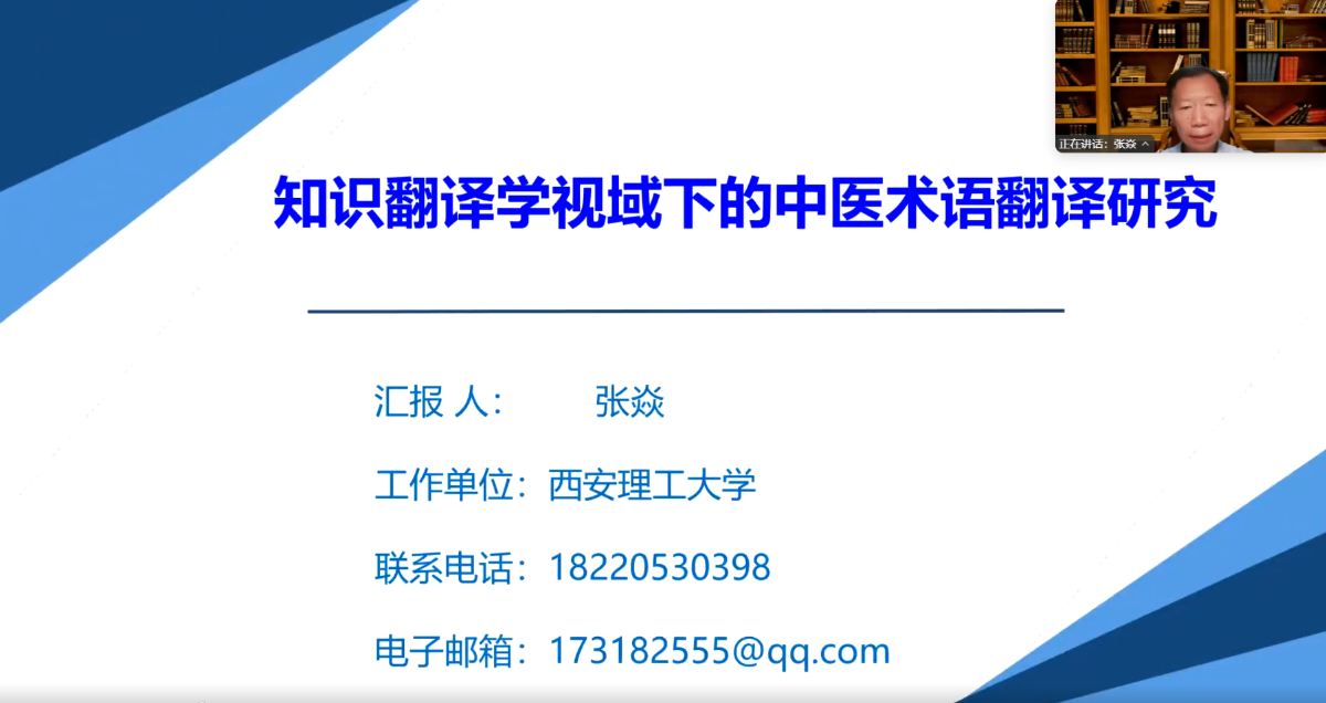 2025年6月17日,翻译协会特别邀请西安理工大学张焱教授开设讲座,主题为“知识翻译学视域下的中医术语翻译研究”。翻译协会会长赵新雷主持讲座。