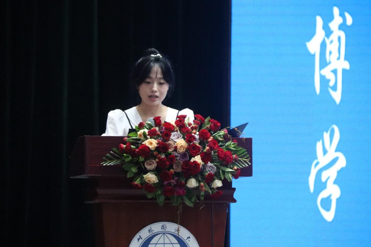高年级研究生代表, 2022级翻译理论与实践方向研究生王灿在发言中鼓励同学们以积极昂扬的姿态投入学习,勇敢迎接挑战,保持严谨的学术态度,不断追求卓越。祝愿同学们在Mksport体育收获真知,结交挚友,度过充实又美好的时光。