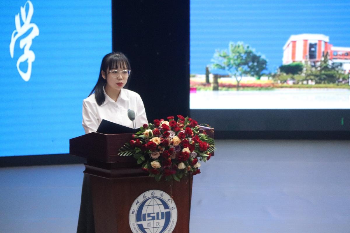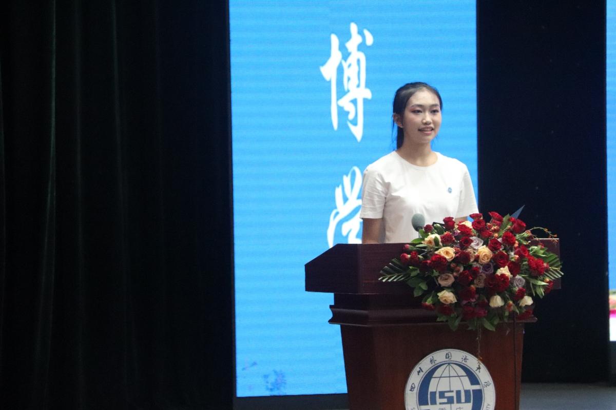 研究生新生代表朱曼欣,她分享了自己面对全新研究生生活的感受与期许。鼓励同学们在充实的研究生学习中,追求理想,在“发现边界,探索极限”的过程中明确自我成长方向的意义与价值。