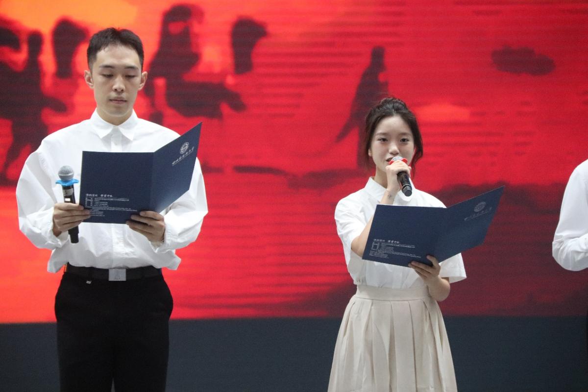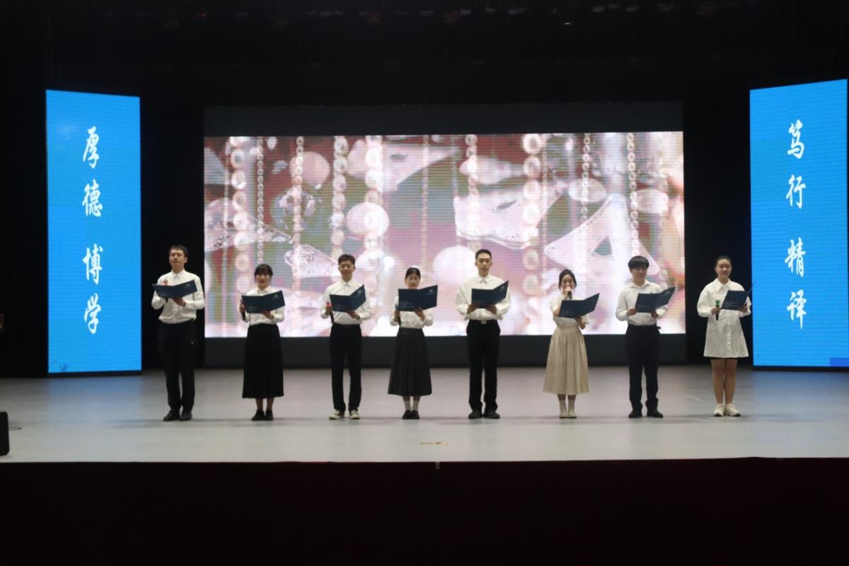 典礼中,公司师生代表还带来了诗朗诵表演《理想》。他们以昂扬的姿态,展现了翻院学子风华正茂、激扬文字、牢记使命、砥砺前行的爱国情怀和奋勇争先的精神风貌。