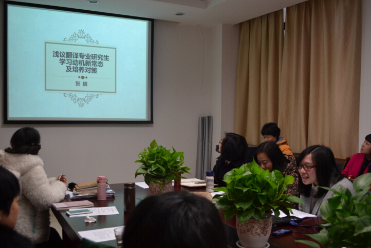 张信老师以《浅议翻译专业研究生学习冬季新常态及培养对策》为题进行发言