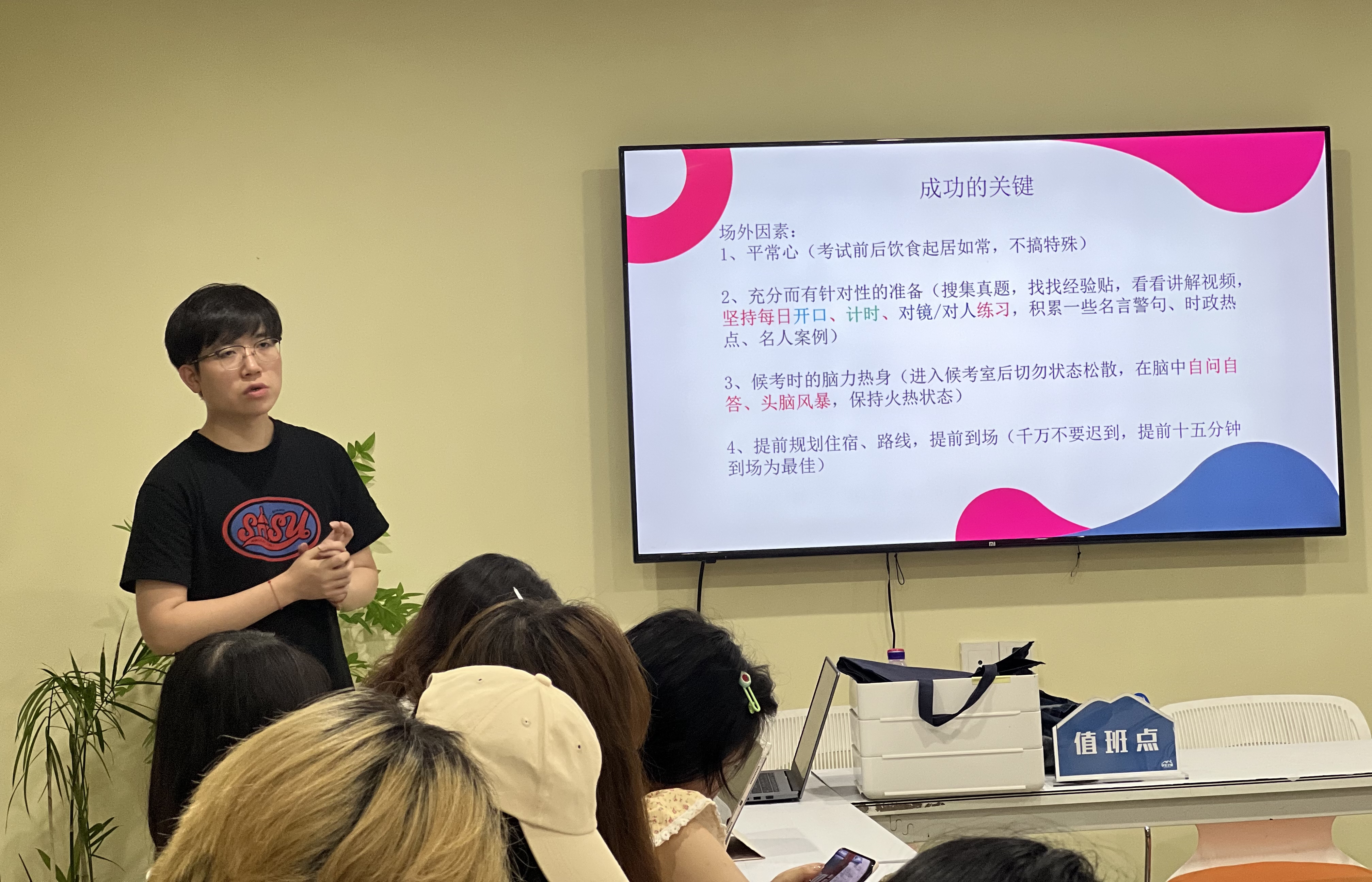 刘弈扬老师以从结构化面试的概念出发,就结构化面试的流程和相关技巧做出了详细的介绍。结构化面试,是遵照规范程序实施的一种面试形式。刘弈扬老师为同学们展示了结构化面试的基本题型与答题技巧。分析了典型案例和破题方法,从职业认知、自我认知、职业理解这三个方面向同学们讲解了结构化面试所需人才能力,特别强调了不同单位、岗位的早结构化面试过程中的区别,提醒各位同学因岗而异,提前做好相关准备。