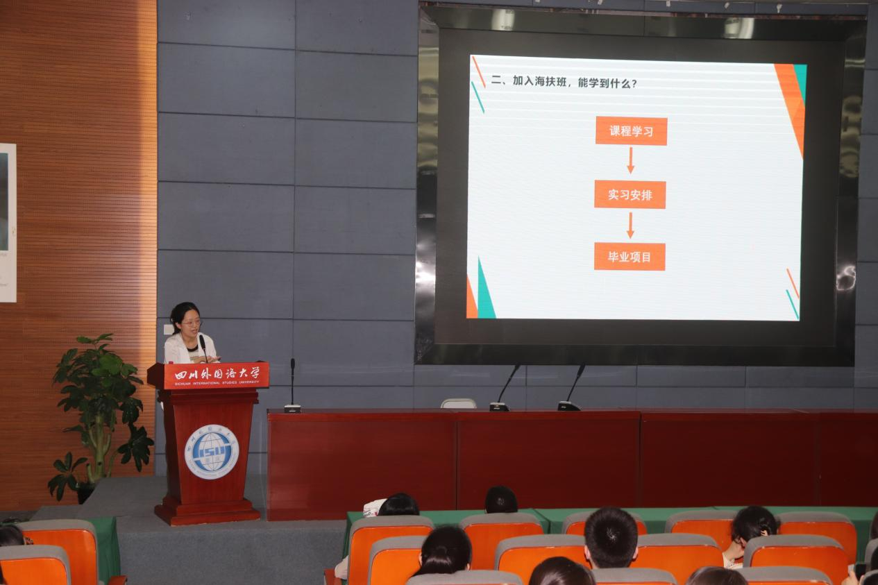 2023年9月22日中午,Mksport体育2023级医学翻译教改实验班“海扶班”招生宣讲会在歌乐楼A栋学术报告厅举行,本次宣讲会针对公司2021级本科同学和2023级研一同学。海扶医疗科技有限公司国际学术专员徐东元及团队、公司经理助理李希希老师及办公室主任易琼老师出席了本次宣讲,宣讲会由李希希老师主持。