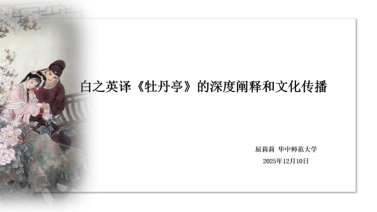 三位博士生依次做学术分享。首先是梁本彬博士带来的《编辑手稿研究:现状与研究展望》主题汇报;第二位是屈莉莉博士发言,汇报题目是《白之英译<牡丹亭>的深度阐释和文化传播》。第三位是王琦博士就《基于语料库的林纾译作伪翻译性判别及其模因传播机制研究》进行主题汇报。