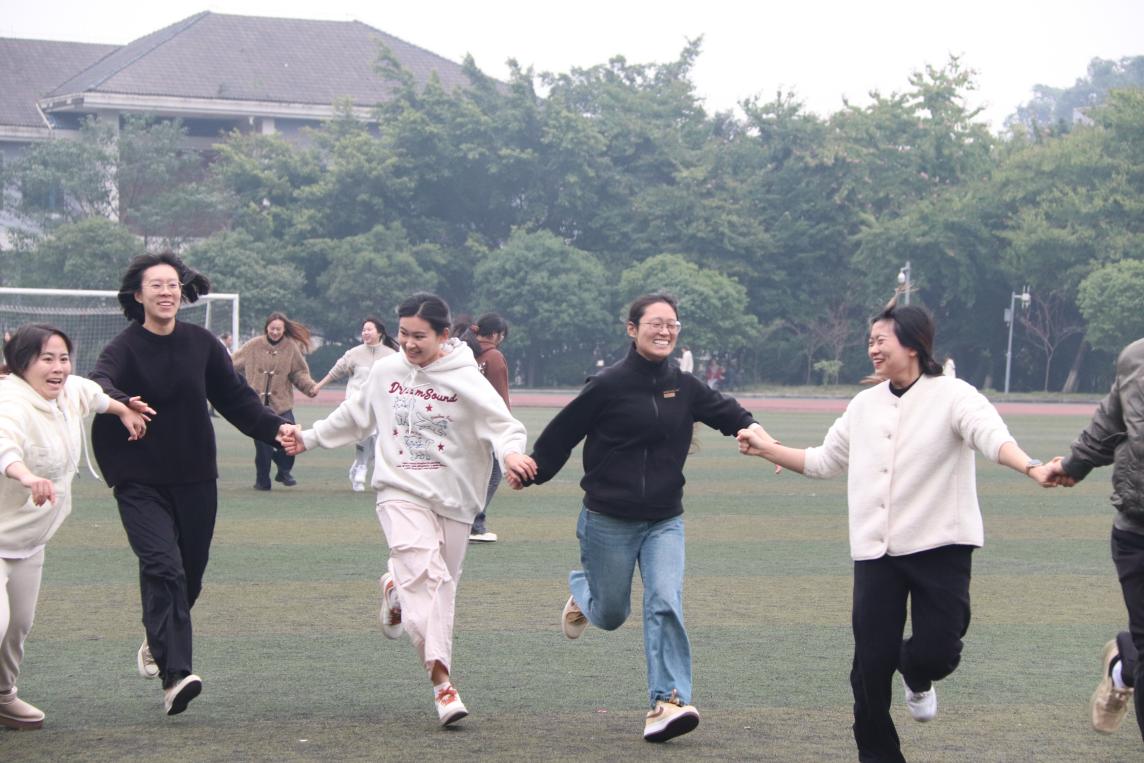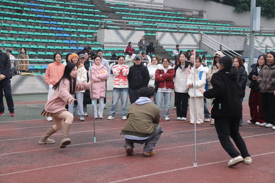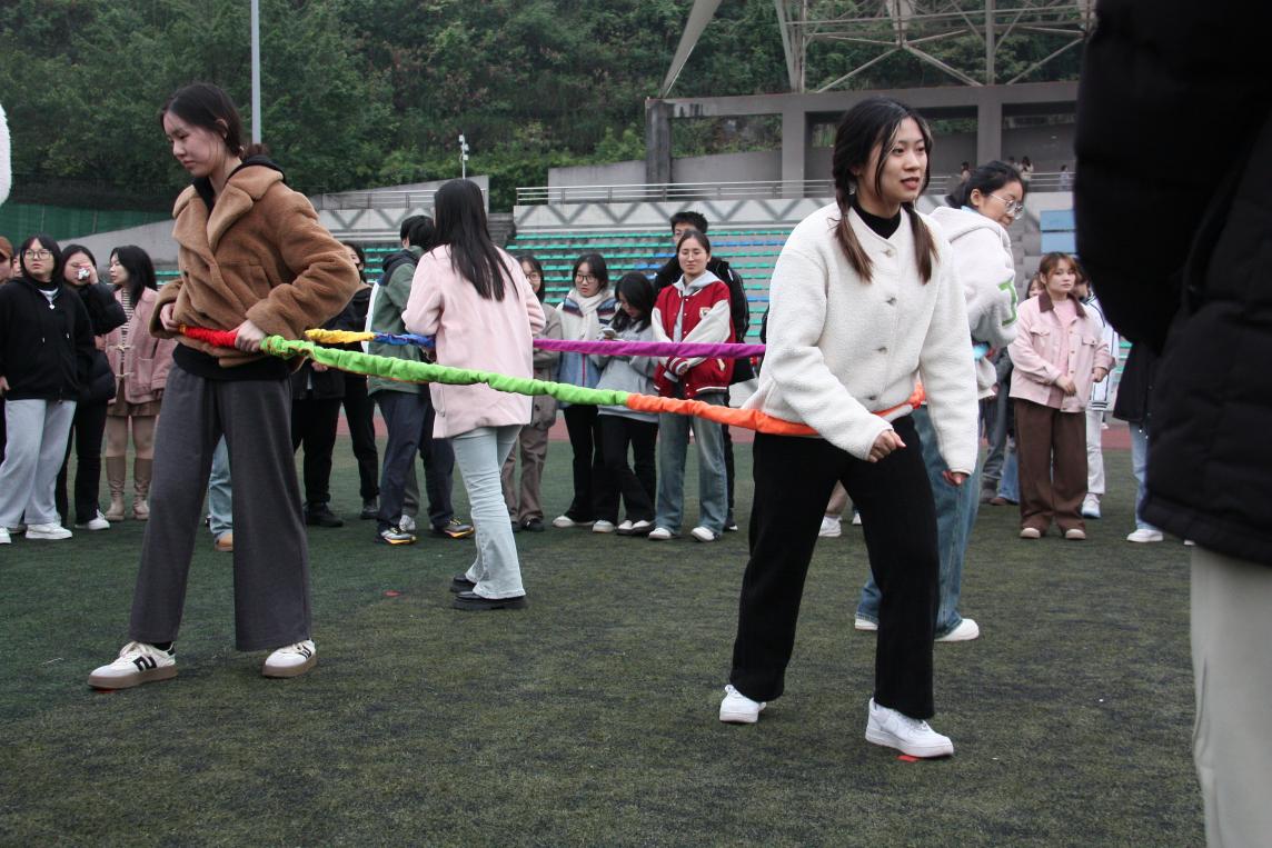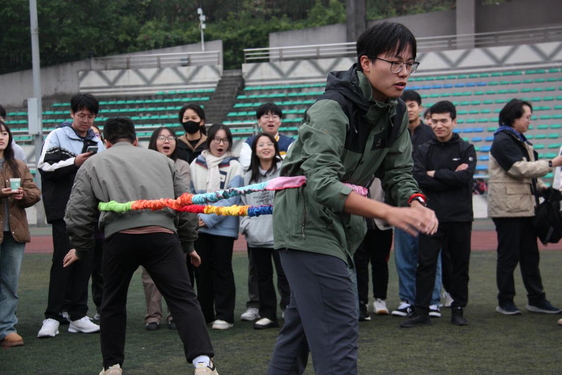 个人赛分为不倒森林、多向拔河两个项目。“此次个人多向拔河赛场面激烈,同学们都积极踊跃地参与其中。但是友谊第一、比赛第二,在这场个人赛中,我发现比赛的乐趣不在于竞争,更在于认识新朋友并享受其带来的乐趣。”2024级笔译1班研究生张靓萱赛后说道。