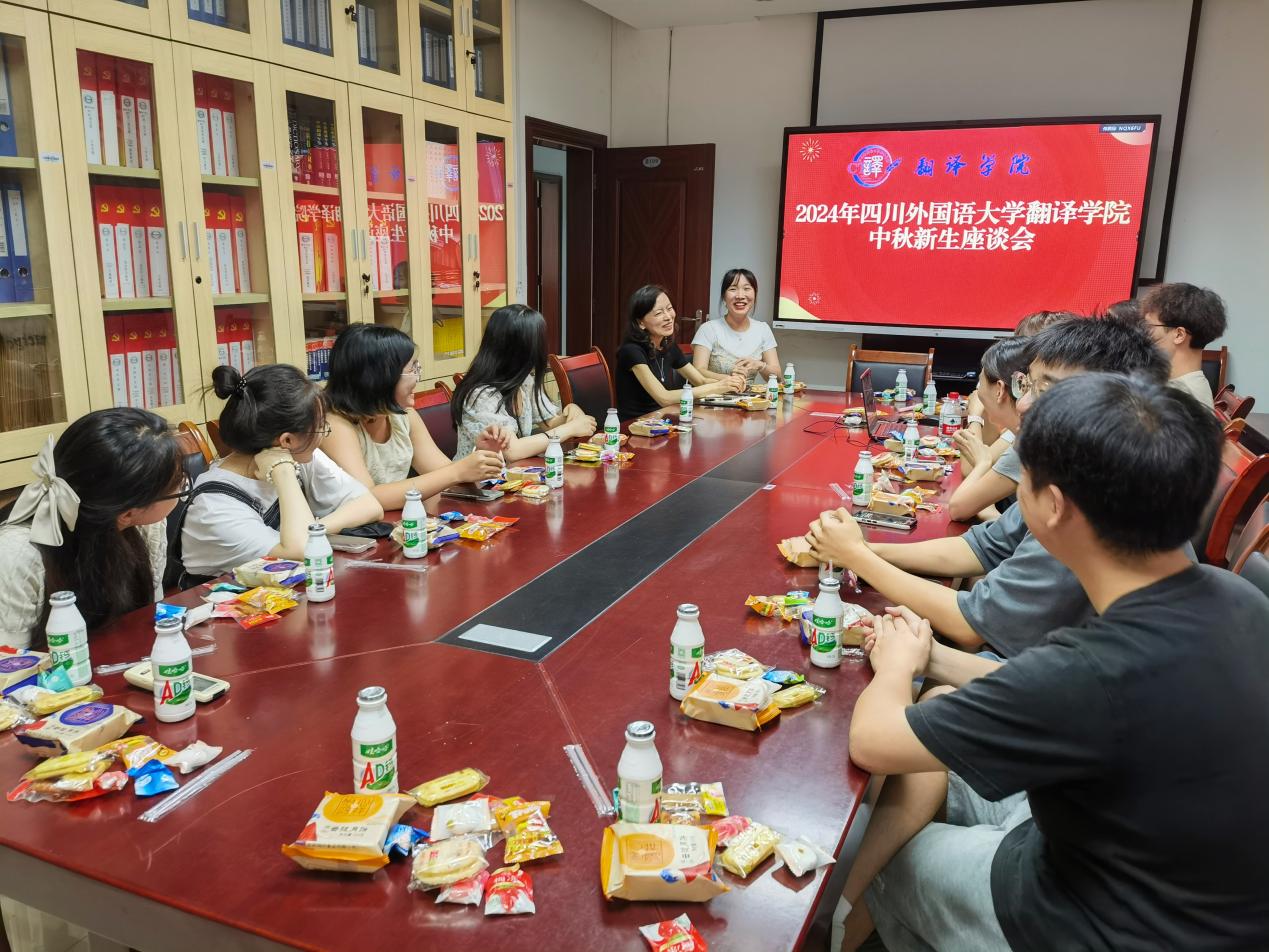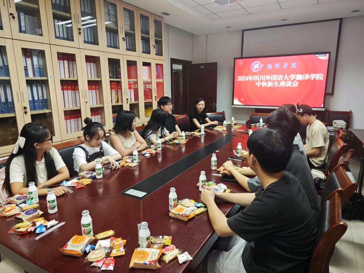 座谈会上,公司为同学们精心准备了月饼以和食品,现场充满了节日的氛围。张丽老师为同学们送上了亲切的慰问和节日的祝福,并介绍了公司的总体情况,鼓励大家积极参加翻译专业相关的比赛和实践活动,真正做到“学以致用”,做新时代的复合型人才。刘弈扬老师结合自身经历,向大家介绍了公司的员工工作理念;刘朦朦老师细心周到为新同学们答疑解惑,分享自己在学习、生活中的心得体会。座谈会上,新同学们逐一介绍了自己的求学经历;细述离开家乡,初到川外、初到公司的感受;分享适应新环境、结识新朋友中的趣事;描绘自己对接下来学习生活的期待以及对未来的目标和蓝图。师生交流轻松热烈,现场氛围温馨融洽。