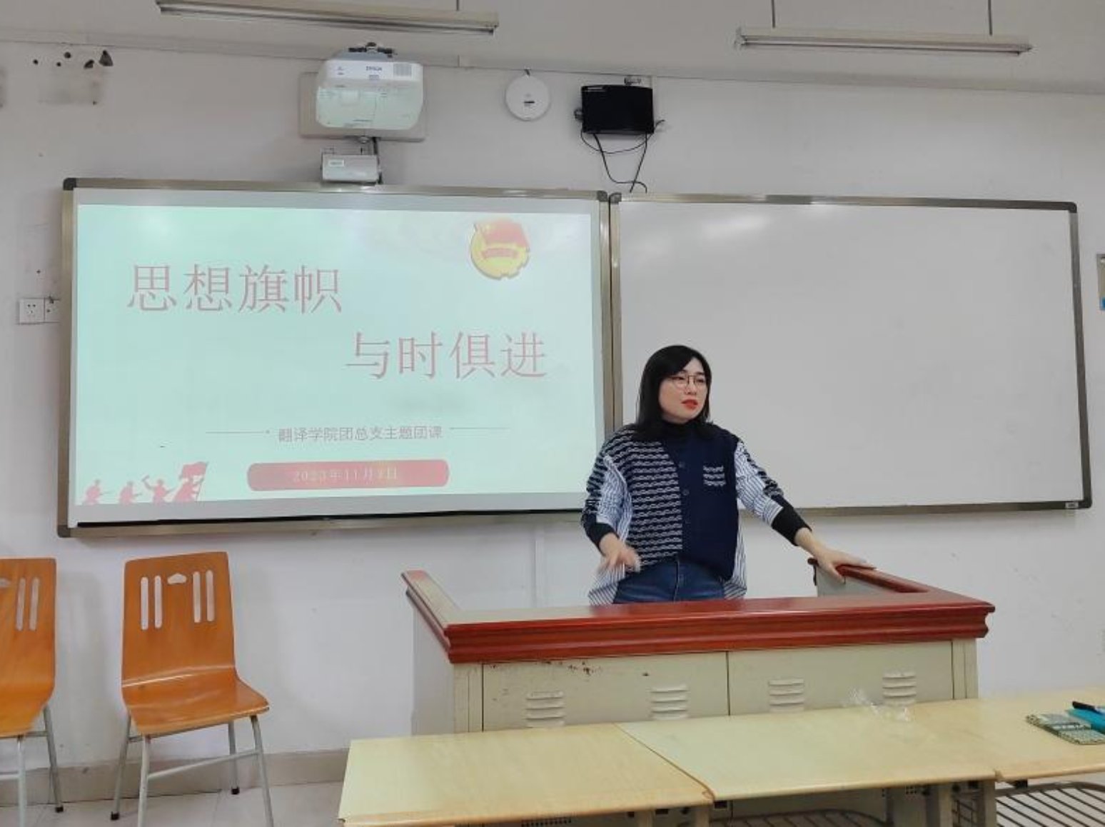 为深入学习习近平新时代中国特色社会主义思想,深刻领会习近平新时代中国特色社会主义思想的精髓要义,不断保持和增强共青团的政治性、先进性和群众性,进一步引导广大共青团员学习新思想,始终成为紧跟党走在时代前列的先进组织。深刻领悟奋斗精神对于青年的重要意义,增强新时代新青年的民族自豪感和使命感。2023年11月3日在歌乐楼C101,公司团总支召开“立好思想旗帜 做到与时俱进”主题教育团课。团课由公司团总支书记张信主讲,公司全体团干以及部分团员参与团课学习。