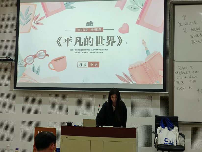 公司党委宣传部胡义强老师、公司2023级辅导员王品老师、2022级全体同学参与了本次活动。分享活动由唐芊老师主持。4个小组为大家带来了《平凡的世界》、《西方现代思想讲义》、《吾国与吾民》等不同作品。
