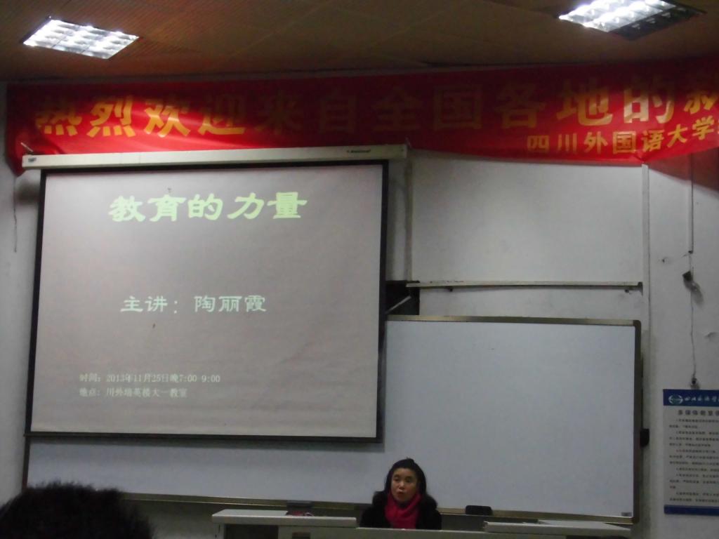 2013年11月25日晚7点,上海外国语大学文学博士,Mksport体育app官网入口MTI口译方向导师陶丽霞教授应Mksport体育邀请在培英楼大一教室举办题为“教育的力量以及MTI员工如何走向专业之路”的讲座。讲座主要针对MTI专业员工,是公司MTI导师联合指导专题讲座的第三讲,由Mksport体育钟毅老师主持。现场座无虚席,许多关注自我教育与发展的同学也前来聆听讲座。