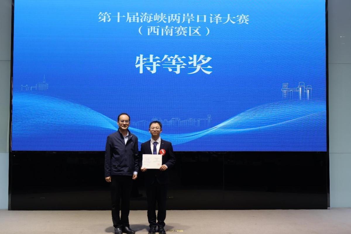 参赛选手在比赛中沉着冷静、反应迅速、翻译流畅,展现了扎实的专业知识、良好的翻译素养和优秀的口译能力。经过激烈角逐,电子科技大学祝易同学获得特等奖,重庆大学廖思佳同学、重庆邮电大学骆怡彤同学分获得一等奖。