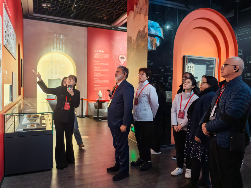 为圆满完成此次任务,四位同学提前进行了系统的资料学习与讲解稿打磨。服务过程中,他们以扎实的语言功底、深厚的文化素养和饱满的热情投入工作,通过清晰流畅的表达、严谨细致的解说和亲切友好的互动,帮助国际嘉宾深入理解中国文化遗产的独特价值,赢得了与会代表的一致好评。