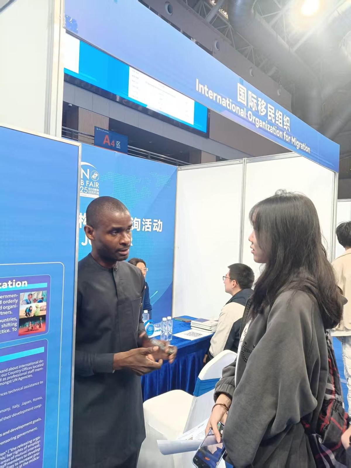 2025级英语笔译专业研究生郑小晓同学说:以前“联合国机构”对我来说就只是新闻里遥远的符号,未曾想过这些承载着世界责任的机构会与我产生联系。在活动现场,我看见了天南海北的同学,脸上都洋溢着期待与热情,积极踊跃地投入到与外宾和老师们的交流中去。通过咨询现场工作人员一些问题,我对这些机构所承担的责任和他们为世界做出的贡献有了进一步的认识,也对未来的方向有了更清晰的认知。