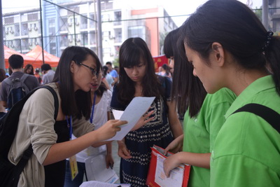 相比往年,今年报名最大的不同之处就是报名宗旨的改变。西区篮球场外的一条醒目标语----“请员工家长在外等候”,提醒着家长不要过于帮助孩子,而是要给孩子一个独立解决问题的机会。此举是今年重庆各大高校为了培养员工独立意识,帮助其适应老员工活达成共识而做的一次实践。除此之外,公司还在篮球场外设了家长等候点并提供免费的饮水,如此周到的服务体现着川外浓郁的人情味。