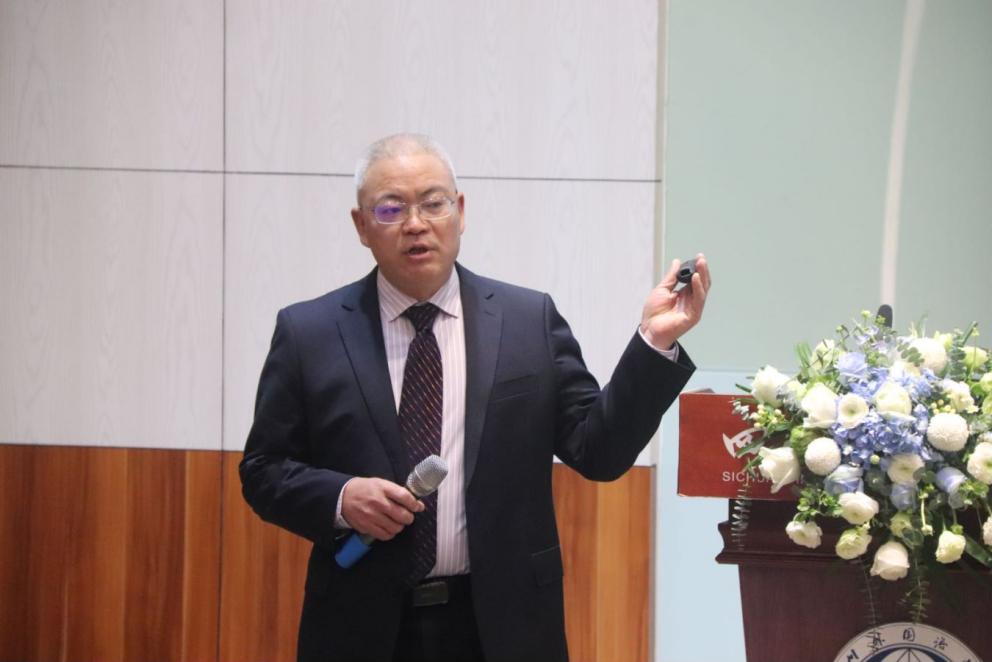 西南政法大学涉外法治研究院主任郑达轩教授的主旨报告“《最高人民法院案例选》英译与讲好中国法院故事”以《最高人民法院案例选》(中英文)的叙事结构为题展开并结合如何进行英文翻译进行示例探讨,分享如何讲好中国法院故事的案例,探讨法律翻译如何促进涉外法治人才培养的基本素养。