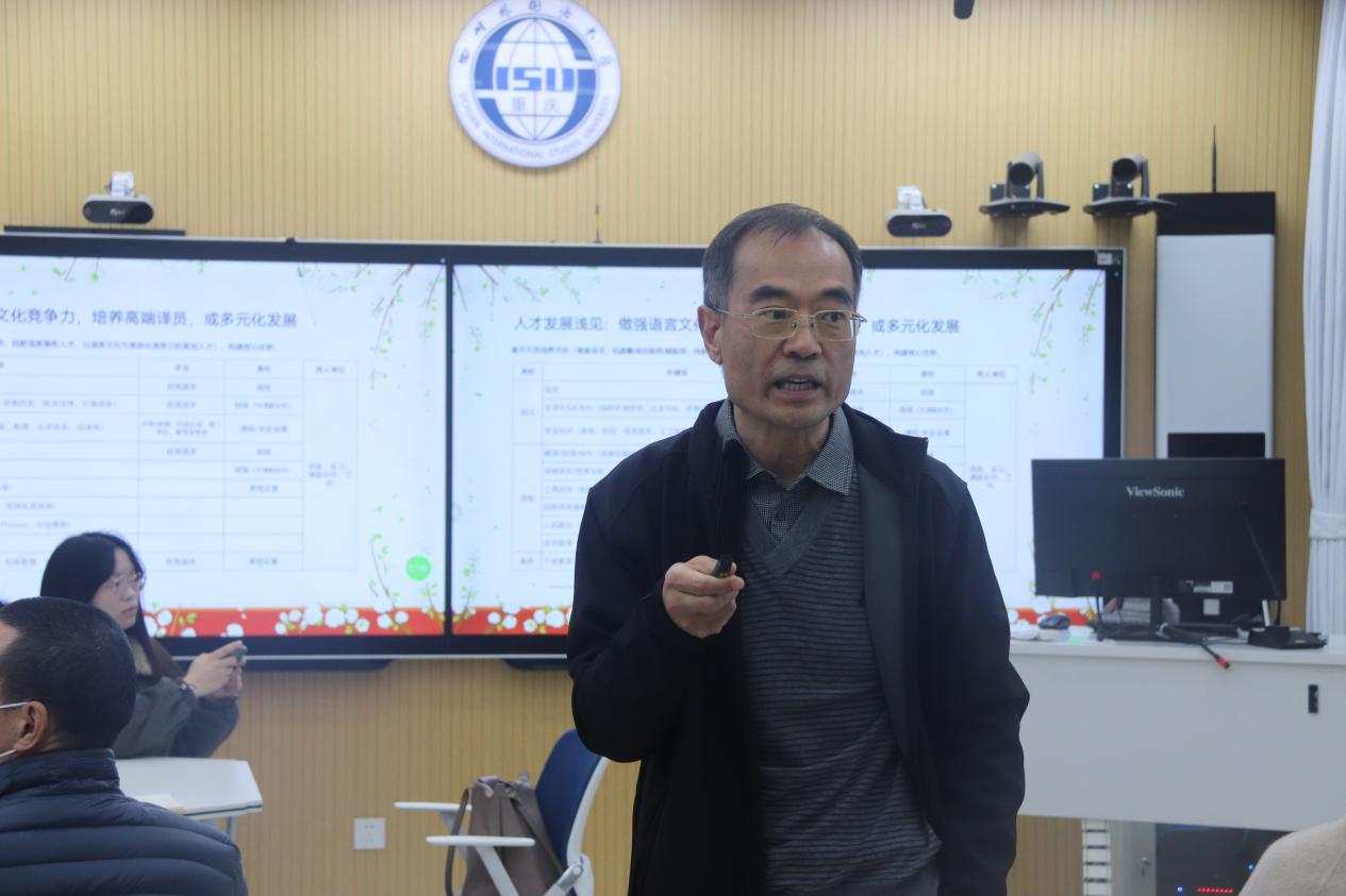 1月15日上午8:30,广东外语外贸大学赵军峰教授应邀于公司教师发展中心智慧教室,做题为“新时代翻译专业教育与教师发展”的讲座。讲座由公司经理李金树教授主持,公司教师、博士研究生与硕士研究生参加了本次讲座。