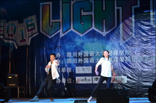 晚上七点,伴着热场视频激荡人心的音乐,晚会正式拉开序幕。开场舞《Knock Out》 “Turn off the lights”,灯光变换,激情舞蹈瞬间引燃全场。动感舞姿引得观众掌声连连,把晚会推向第一个高潮。随后,祝朝伟经理致开幕词,总结翻院过去一年所取得的成就,并对翻院新的一年表达了衷心祝愿。