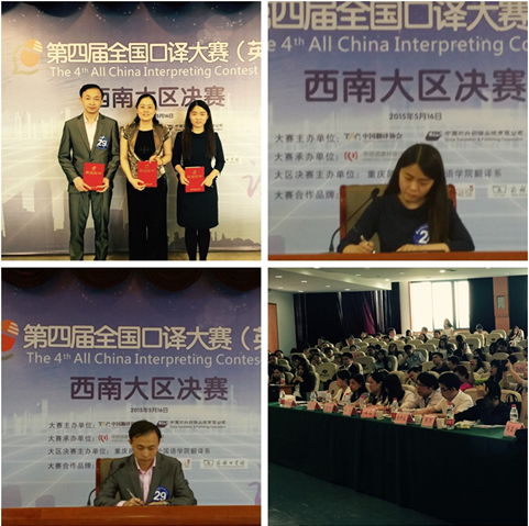 2015年5月16日,第四届全国口译大赛(英语)西南大区赛在重庆师范大学虎溪校区弘德楼凯撒报告厅正式拉开帷幕,来自云、贵、川、藏、渝各大高校的34名选手从初赛和复赛中脱颖而出,参加了此次西南地区的决赛。Mksport体育app官网入口在此次比赛中取得优异成绩:Mksport体育程霄宇同学荣获一等奖,Mksport体育贾代春荣获二等奖。公司Mksport体育副教授张鹏应邀担任此次大赛评委。