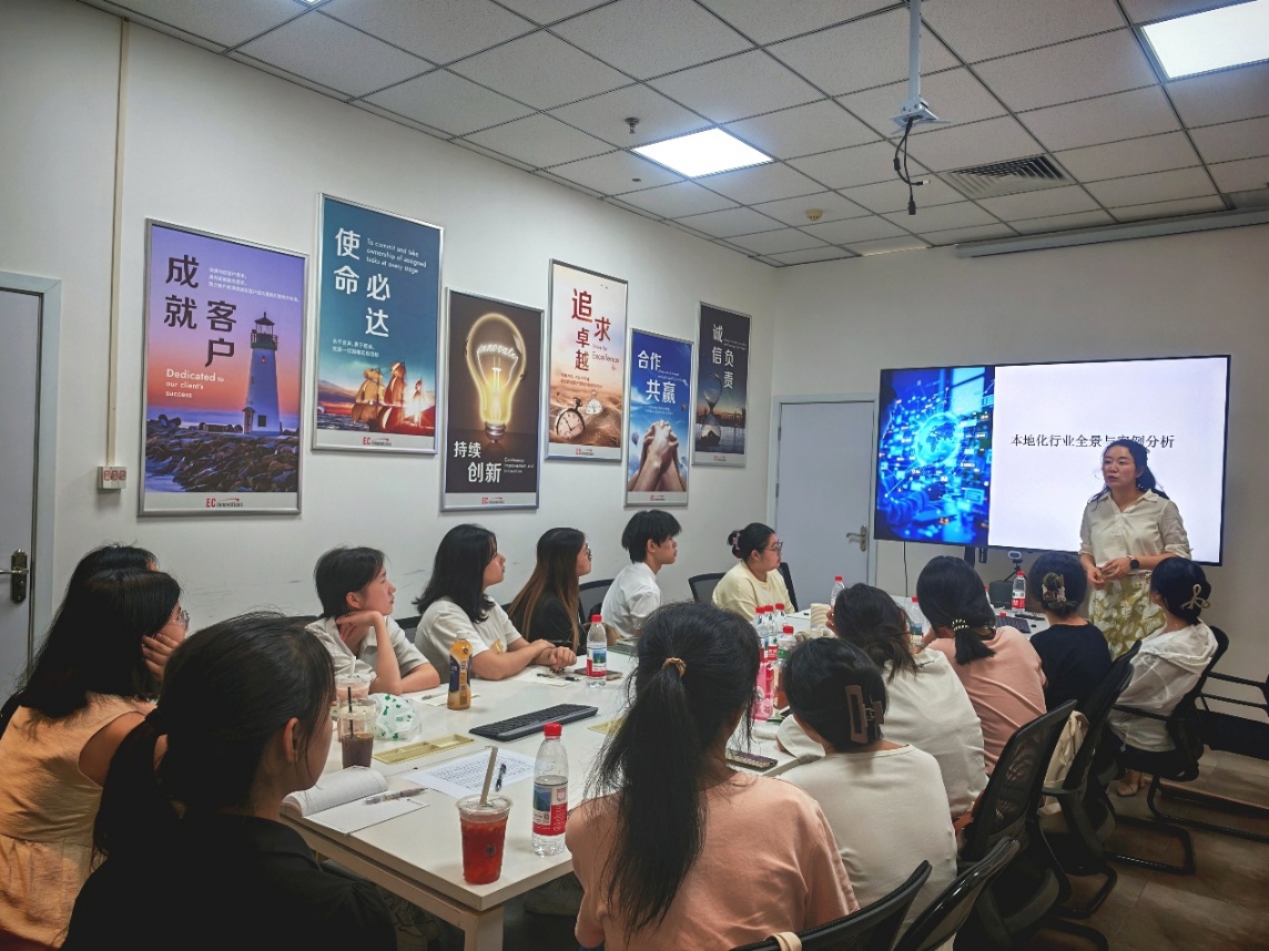 2025年7月3日至4日,Mksport体育本硕15名员工前往全球语言服务50强企业—创思立信 (EC Innovations)重庆分公司开展实践周活动。本次访企实训由企业一线业务人员指导,通过沉浸式行业课堂与实战训练,助力员工了解翻译市场本地化的前沿趋势和语言服务国际化的就业前景。公司实习实训办公室主任廖崇骏老师及研究生2024级辅导员刘弈扬老师带队参加。