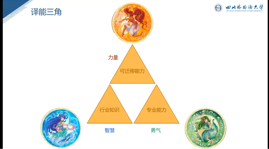 杨涛深入探讨了“译能三角”能力模型,强调同学们必须融合专业能力、可迁移能力以及行业知识这三大核心力量。他结合自身经验指出,扎实的在校学习奠定了起步的勇气,丰富的实践经历锤炼了核心能力,而广阔的视野与开放的思维则不断滋养智慧,助力开拓多元发展路径。最后,他建议从兴趣出发选择职业,并提前打造个人作品集,以全面展示自身能力,从而胜任机器无法替代的人际协作型岗位,实现真正的译能升级。