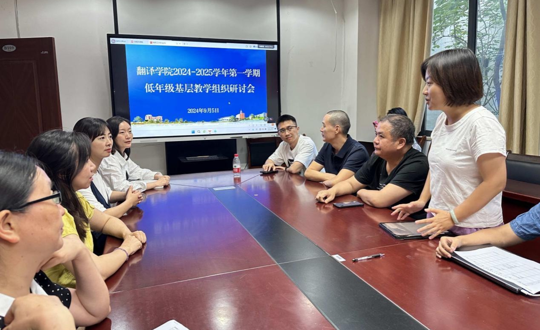 此外,教研室还对《英语阅读1》、《英语写作1》、《文化中国》、《英语国家概况》和《跨文化交际》等课程的教学内容进行了初步的交流,确保各个课程间的联系和互补内容,并就如何在教学中融入课程思政元素进行了初步商讨,以期通过多样化的教学方法提高员工的英语应用能力和跨文化交际能力,同时加强员工的思想政治教育。