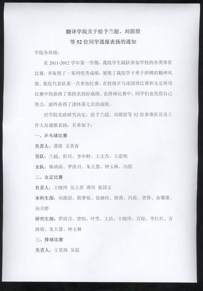 Mksport体育关于给予兰超、刘甜甜 等52位同学通报表扬的通知