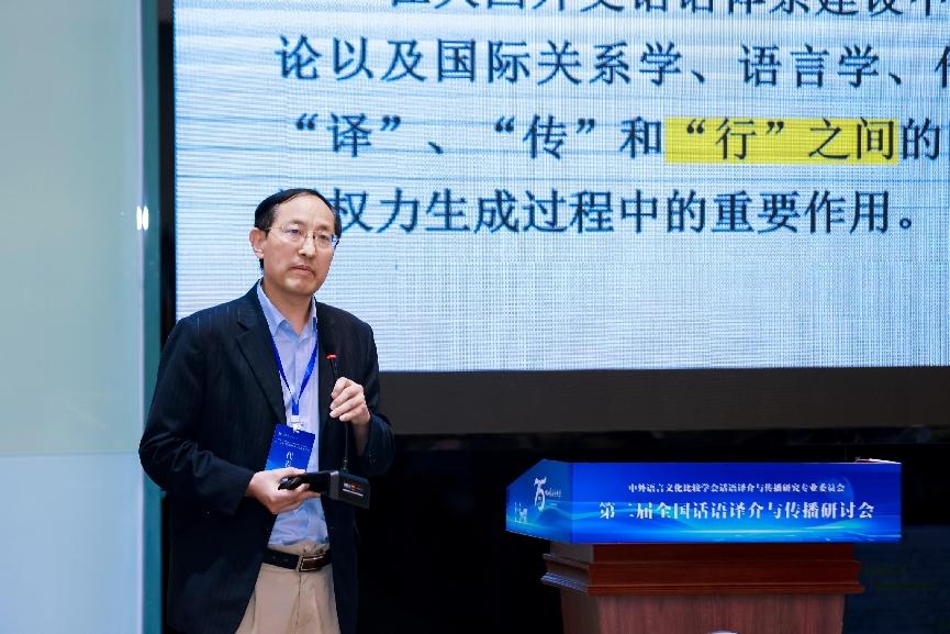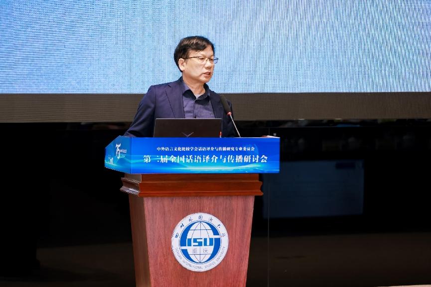上海外国语大学胡开宝教授做了题为《中国特色大国外交话语的多模态传播研究》的主旨报告,他聚焦中国特色大国外交话语的多模态传播,综合运用传播学和语言学等多学科理论,对中国特色大国外交话语在不同模态下的呈现与传播及其效果开展研究,提出优化多模态传播策略,以进一步提升中国特色大国外交话语的国际认同度,为讲好中国故事、传播好中国声音提供新思路与新方法。