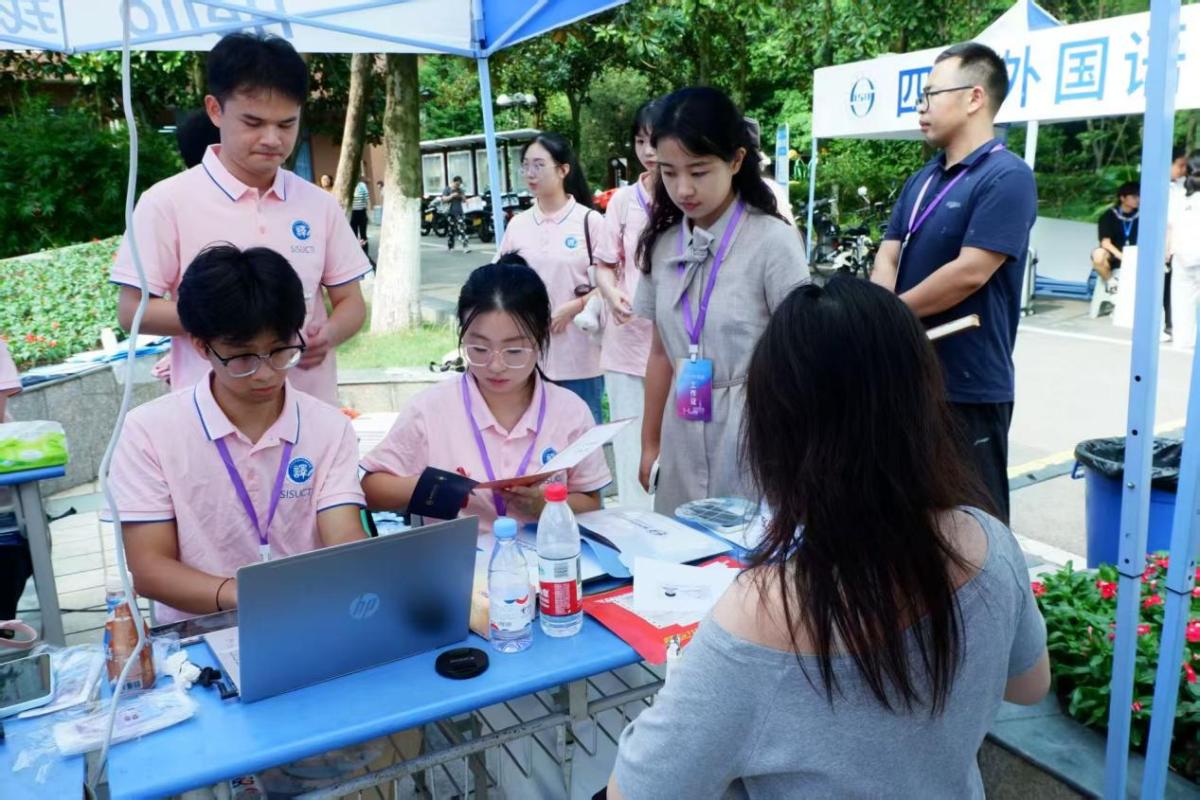 2025级迎新志愿者们清晨七点半便全体到达迎新服务志愿点。为新生提供指引、咨询等多项服务,协助学弟学妹高效完成入学注册流程。他们耐心解答家长与新生的各种疑问,用真挚的笑容与热情的指引让新生初入大公司园即刻感受到归属与支持。
