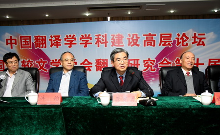 中国比较文学学会翻译研究会会长、中国译协翻译理论与教学委员会副主任谢天振教授致开幕词