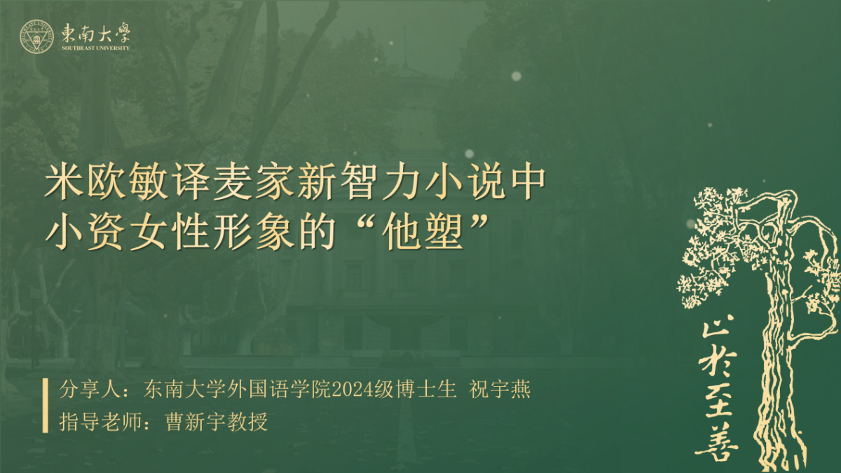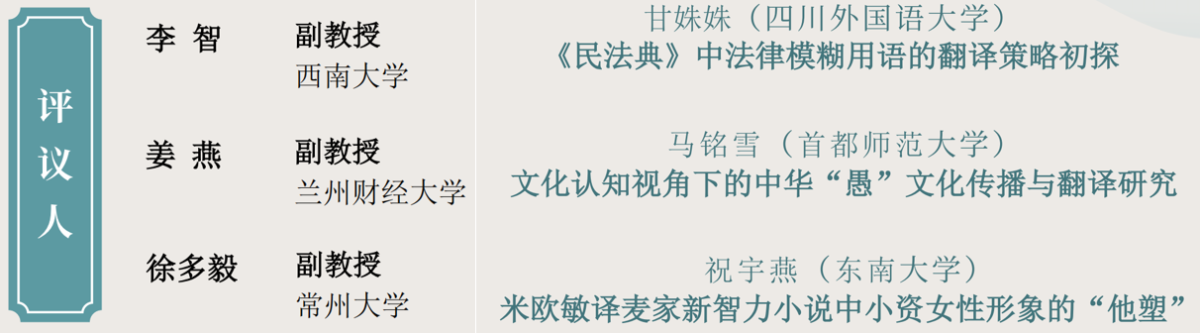 三位博士生依次做学术分享。首先是甘姝姝博士带来的《<民法典>中法律模糊用语的翻译策略初探》主题汇报;第二位是马铭雪博士发言,汇报题目是《文化认知视角下的中华“愚”文化传播与翻译研究》。第三位是祝宇燕博士就《米欧敏译麦家新智力小说中小资女性形象的“他塑”》进行主题汇报。
