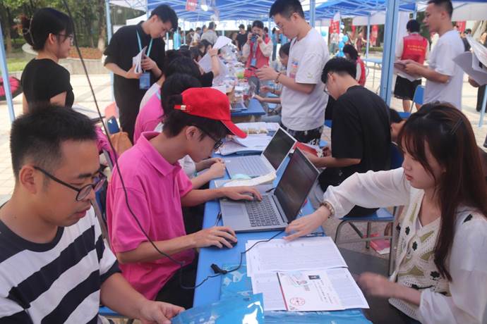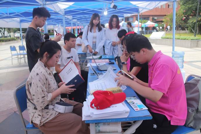 落霞染夜雨,丛中跃秋鸣。夏去秋来,又一年迎新季如期而至,热烈欢迎2023级小萌新们加入翻院大家庭。小编今天来带大家走进迎新的现场。一大早,院学工队伍和员工会志愿者来到迎新报到点,准备起一天的工作。他们热情引导,为新生答疑解惑。