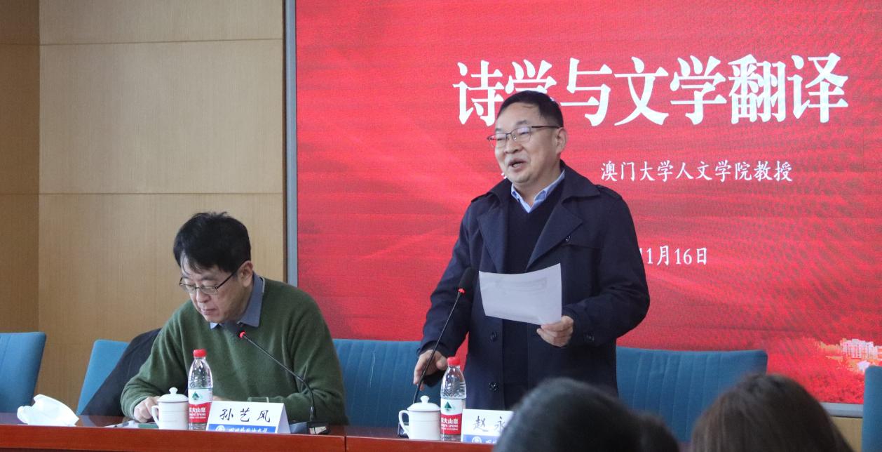 2023年11月16日上午,在西区立德楼C517会议室,澳门大学人文公司翻译学讲座教授、国际译联期刊Babel: International Journal of Translation主编孙艺风教授做客公司歌乐译(Glory)讲坛,为广大师生带来了以“Poetics and Literary Translation”为题的讲座,本场讲座由公司英语公司经理赵永峰教授主持。