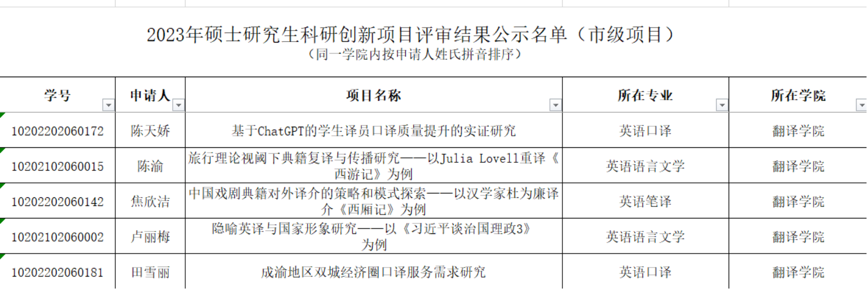 新增5项市级硕士研究生科研创新项目,12项校级硕士研究生科研创新项目,获批5项博士研究生科研创新项目。