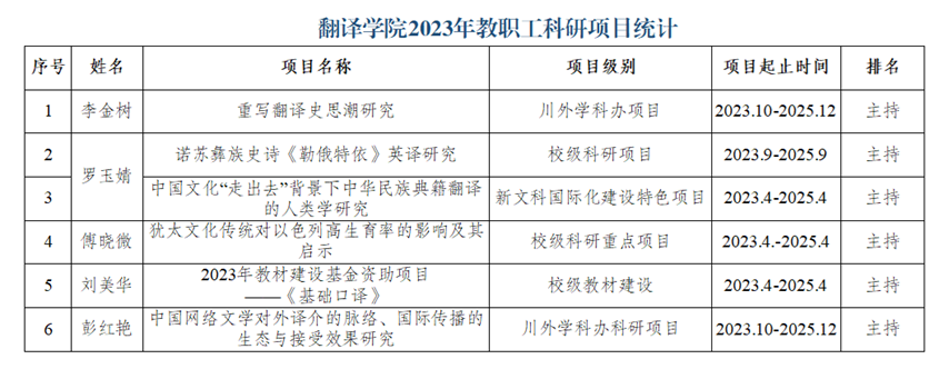 新增新文科国际化特色项目1项、校级科研立项2项。