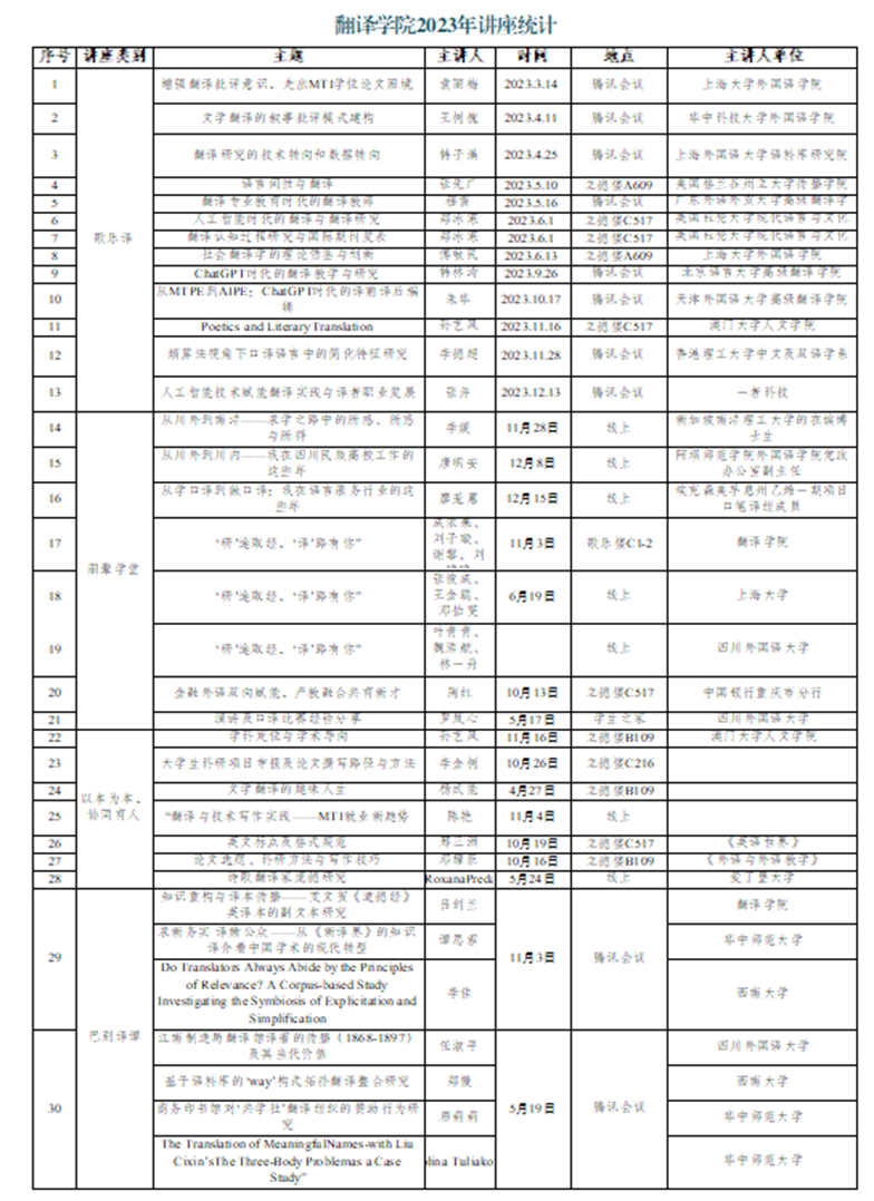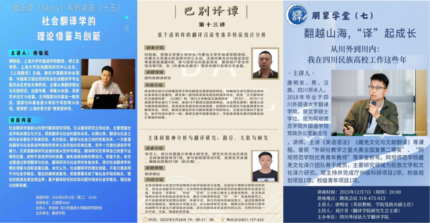 本科生8期朋辈学堂,研究生13期歌乐译讲座,博士生2期巴别译谭,搭建校际学术交流平台,实现互促共进。