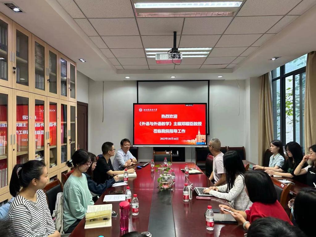 2023年10月16日上午,《外语与外语教学》主编邓耀臣教授莅临公司指导工作,李金树经理主持座谈会,钟毅教授、黄钰洁老师、部分博士生及硕士生参加座谈会。