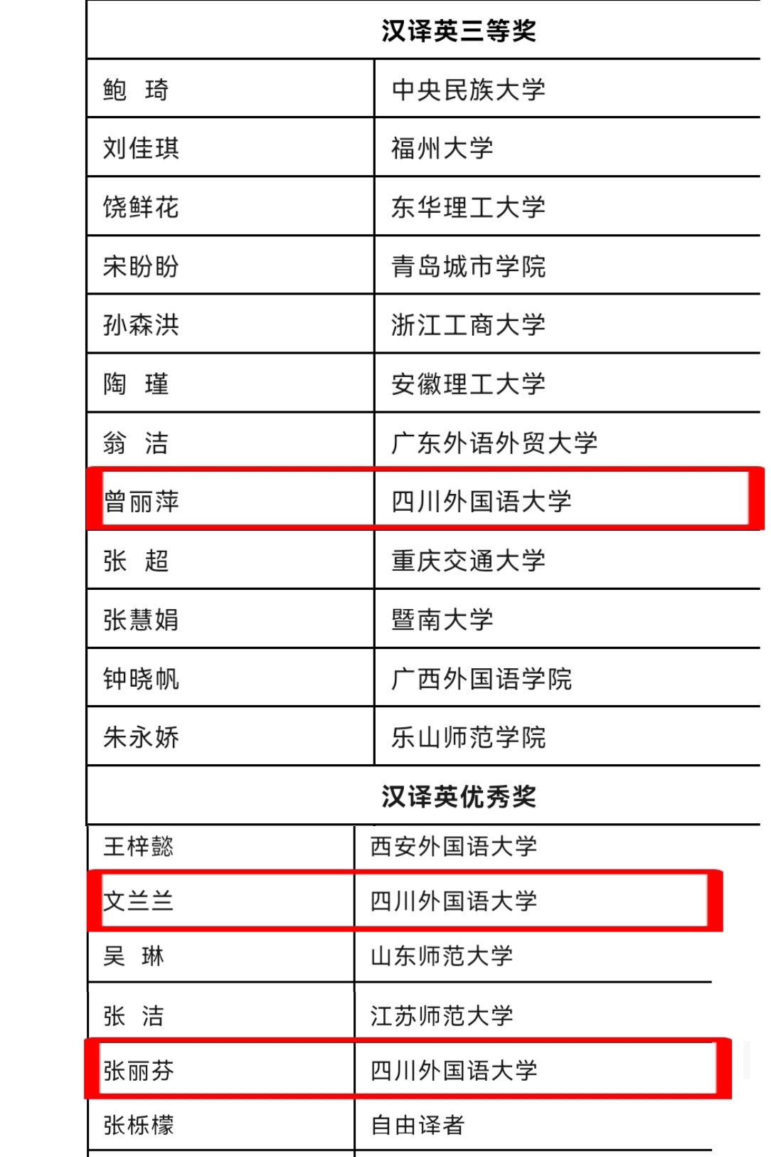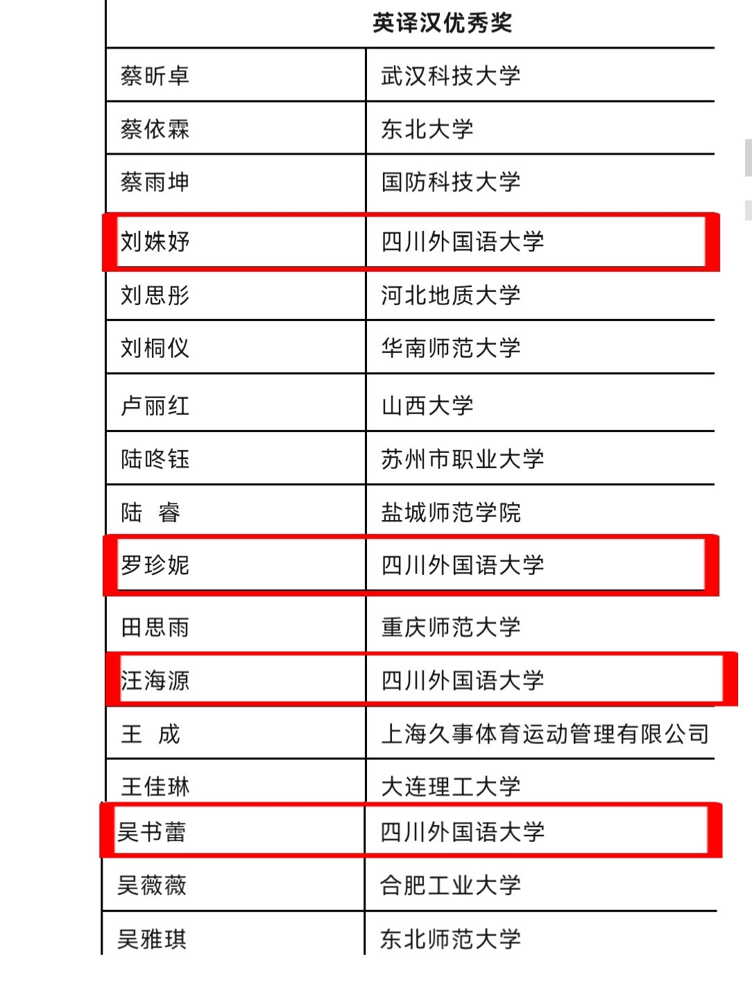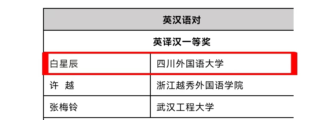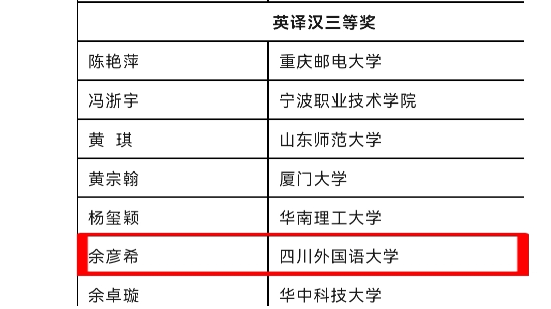 在刚刚揭晓的2025年第三十七届韩素音国际翻译大赛中,公司学子斩获佳绩,捷报频传!其中,2022级本科生白星辰荣获英译汉一等奖;2023级本科生余彦希获英译汉三等奖;2023级本科生刘姝妤、2022级本科生罗珍妮、2025级博士汪海源、2024级研究生吴书蕾获英译汉优秀奖;在汉译英方面,2024级研究生曾丽萍获三等奖,2023级研究生文兰兰、2024级研究生张丽芬获优秀奖。
