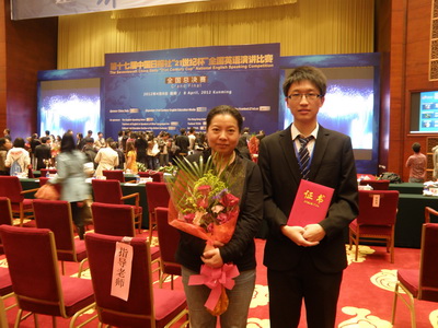 由中国日报主办、21世纪英语教育传媒承办的第十七届中国日报社“21世纪杯”全国英语演讲比赛总决赛于2012年4月8日在昆明海埂会堂圆满落幕。公司Mksport体育2009级学子王陶钧以新颖的观点、出众的英语表达能力获得评委们的一致认可,最终以优异的成绩摘得一等奖。