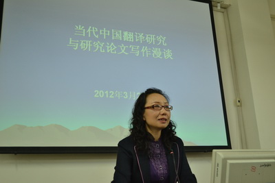 廖七一教授向同学简单介绍了杨教授,以及翻译界现状的3点看法。在讲座正式开始前,杨平教授首先谈了一下对本次讲座的定位,一方面她从翻译学术期刊编辑者的角度来介绍她对翻译研究的看法与认识,另一方面她谈了谈研究方法和论文写作的要求和情况。