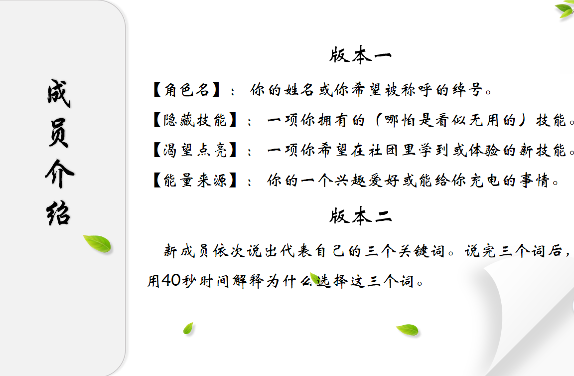 新成员进行自我介绍