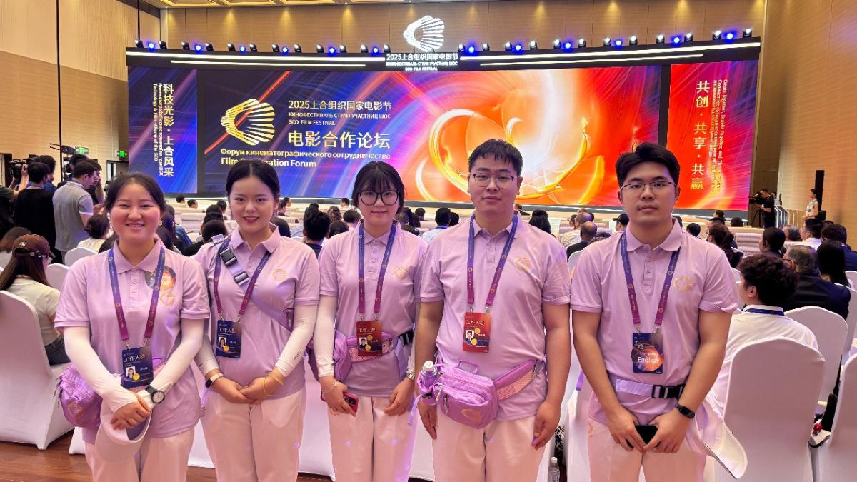 7月3日,2025上海合作组织国家电影节在重庆市永川区盛大开幕。这场以“科技光影·上合风采”为主题的电影盛会,由上合组织国家电影节组委会、中国国家电影局、重庆市人民政府联合主办。公司9名高翻队成员参与到了这次公司的“V小青”国际多语种志愿者服务队中,为本届上合组织国家电影节提供了强有力的志愿服务,充分展示了公司学子的专业素养。