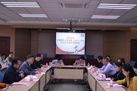 2014年10月23日,由国家外国专家局培训中心副主任姜鸿、中国外文局翻译资格考评中心副主任卢敏等专家组成的“全国翻译资格(水平)考试考点办公室”考察组一行四人莅临公司,对公司申请全国翻译资格(水平)考试口译考试考点进行全面调研。